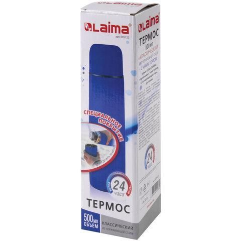 Термос ЛАЙМА классический с узким горлом, 0,5 л, нержавеющая сталь, синий, 605122