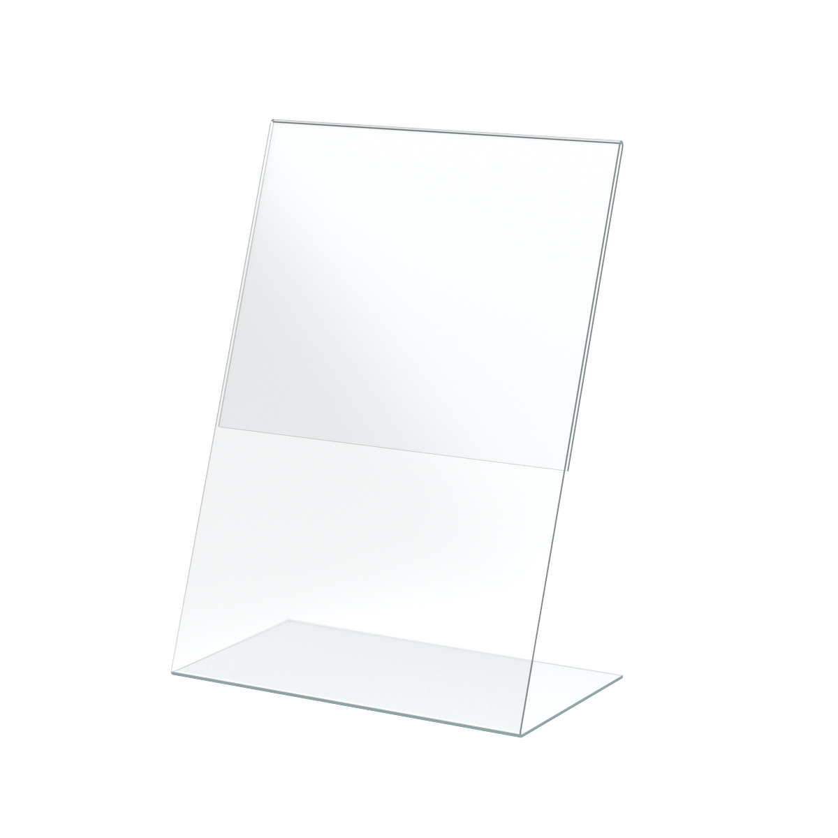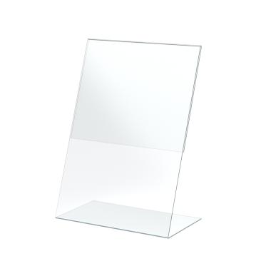 Подставка ACR-PRICER из акрила L-образная используется для размещения бумажных ценников, объявлений, рекламных листовок вертикального формата A5.