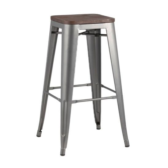 Барный табурет Tolix Серебристый матовый подойдет для домашнего интерьера в стиле Лофт и органично впишется в обстановку кафе или ресторана. Отсутствие спинки у табурета компенсируется широким удобным сиденьем из темного дерева с натуральной фактурой. Расходящиеся металлические ножки, окрашенные в серебристо-матовый цвет, в сочетании с каркасом создают устойчивое основание. Высота табурета Tolix - 75 сантиметров, благодаря чему он подойдет для стандартной барной стойки.