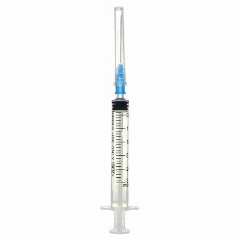 Трехкомпонентный одноразовый шприц состоит из трех частей: цилиндр, поршень, манжета на поршне, изготовлен из специального полипропилена. Нетоксичен, апирогенен. Объем - 3 мл, размер иглы - 23G.Применяют для выполнения подкожных, внутримышечных инъекций и других лечебно-диагностических мероприятий. Безболезненность инъекции обуславливается легким скольжением поршня, без трения. Удерживающее кольцо на поршне предотвращает потерю медикамента, а точная градуировка на шприце позволяет легко считывать показания. Форма и размер ободка вокруг цилиндра обеспечивают удобство и надежность захвата и удержания шприца в момент использования. Прочное двойное стопорное кольцо предотвращает случайное выдергивание поршня в момент набора лекарственного средства. Индивидуальная стерильная блистерная упаковка с отогнутым краем – плотная мед.бумага и прозрачная пленка (состав пленки: полиэтилен / полиамид). Упаковка вскрывается без образования бумажной бахромы. Нетоксичен, апирогенен. Метод стерилизации – этиленоксид (EO).