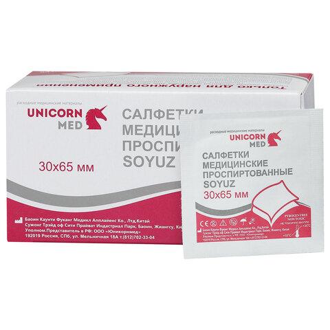 Спиртовые салфетки антисептические 30x65 мм, КОМПЛЕКТ 100 шт., SOYUZ, короб, СП11-11