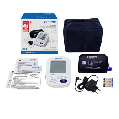 Тонометр OMRON M3 (HEM-7121-ARU) с адаптером – это автоматический и универсальный прибор с фиксацией манжеты на плечо с широким набором пользовательских функций для точного и надежного измерения артериального давления и пульса на дому.Прибор в обновленном эргономичном дизайне, с современными электронными компонентами и программным обеспечением. Тонометр Omron M3 Comfort с инновационной манжетой Omron Intelli Wrap, для обхвата руки от 22 до 42 сантиметров. Благодаря уникальной технологии 360 - область измерения осуществляется по всей окружности руки. Манжета обеспечивает точные результаты измерения при любом положении манжеты на плече. Датчик давления Omron имеет уникальные характеристики, способен учитывать мельчайшие колебания воздушных масс и индивидуальное состояние сосудов пользователя и производить максимально точный расчет систолического и диастолического давления. В тонометре предусмотрены индикатор правильной фиксации манжеты, который исключает ее слишком свободное наложение, и индикатор движения. Более полную картину состояния здоровья позволяют получить индикаторы повышенного артериального давления и аритмии. Графический индикатор уровня артериального давления сигнализирует совпадают ли с нормой для результатов измерения артериального давления в домашних условиях. В случае регулярной фиксации отклонений от нормы необходимо обратиться к врачу. Прибор может использоваться для самоконтроля за артериальным давлением сразу двумя членами семьи. Память прибора включает по 60 измерений на каждого из двоих пользователей, а также гостевой режим. Тонометр рассчитывает среднее значение на основании трех измерений, произведенных за последние 10 минут. Прибор подходит для регулярной проверки артериального давления дома и в поездке. Тонометр работает как от батареек так и от сети. Батарейки типа АА и сетевой адаптер Omron HHP-CM01 входят в комплект поставки. Прибор оснащен специальной технологией энергосбережения. Благодаря ей, одного набора батареек хватит примерно на 1000 измерений давления без замены источника питания. Прибор клинически апробирован для использования в период беременности в соответствии с Международным протоколом Европейского общества гипертонии. Производитель оставляет за собой право без предварительного уведомления вносить изменения в технические характеристики, комплектацию и конструкцию, не ухудшающие эксплуатационные характеристики изделия.