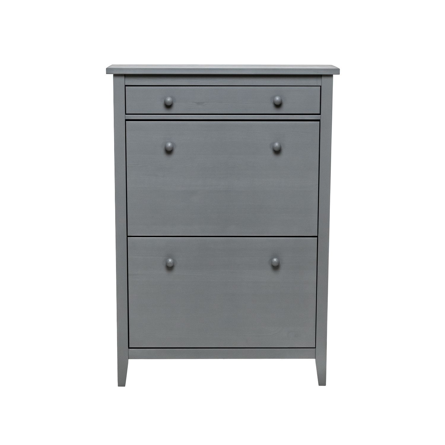 Этажерка для обуви выполнена в сдержанном скандинавском стиле. Ненавязчивым акцентом выступает декор из круглых деревянных ручек, поддерживающий стилистику модели. Изделие выполняется в белом, черном и серых универсальных цветах, что позволяет вписать тумбу в уже готовый интерьер.