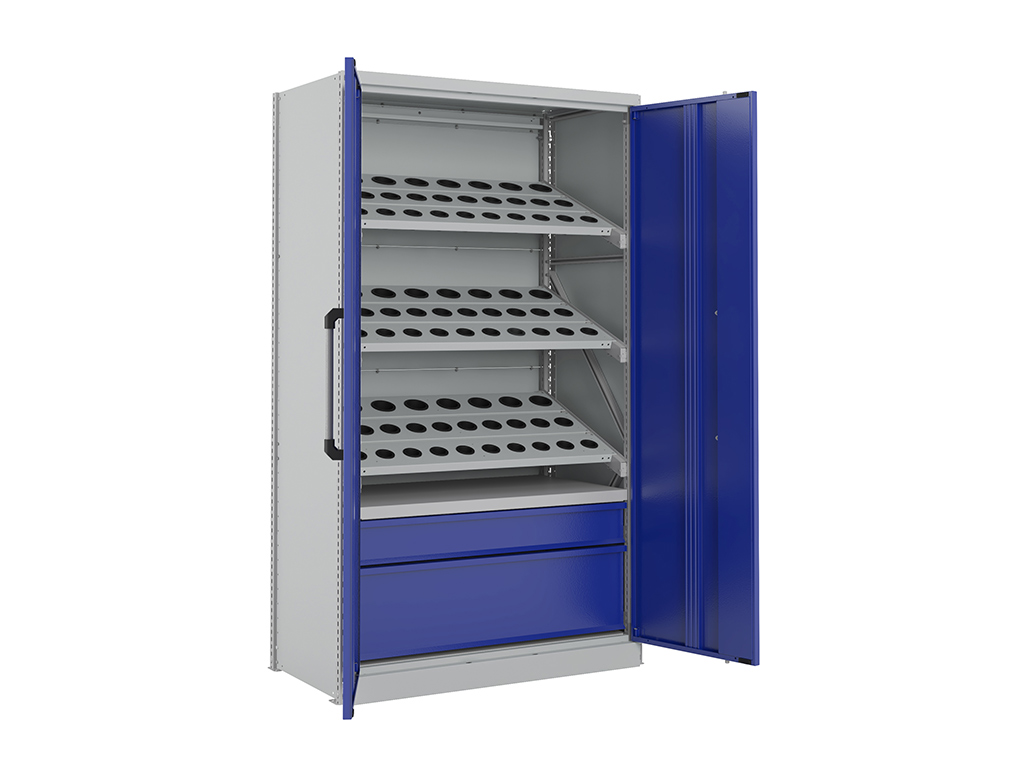 - Дополнительно шкаф может комплектоваться полками для держателей инструмента SK 40, SK 50 и HSK 63