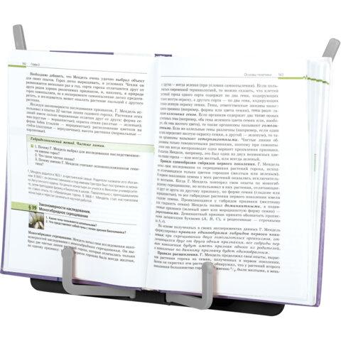 Подставка для книг и учебников BRAUBERG cтанет незаменимым помощником для школьников и любителей чтения. Использование подставки для книг способствует формированию правильной осанки.Подставка выполнена из прочного ABS-пластика. Регулируемый угол наклона обеспечивает удобство при работе с текстом, облегчает чтение и подготовку домашней работы. Раскладные верхние планки позволяют размещать книги большого формата. Нижние держатели регулируется в зависимости от толщины книги. Блокиратор позволяет надежно зафиксировать подставку на столе и не позволит ей упасть от тяжести книги. Размер подставки - 19х27 см. Лаконичный дизайн органично впишется в любой интерьер. Цвет корпуса – черный. Цвет держателей – серый.