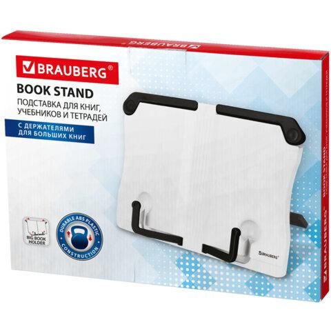 Подставка для книг и учебников BRAUBERG cтанет незаменимым помощником для школьников и любителей чтения. Использование подставки для книг способствует правильному формированию осанки.Подставка выполнена из прочного ABS пластика. Регулируемый угол наклона обеспечивает удобство при работе с текстом, облегчает чтение и подготовку домашней работы. Раскладные верхние планки позволяют размещать книги большого формата. Нижние держатели регулируется в зависимости от толщины книги. Блокиратор позволяет надежно зафиксировать подставку на столе и не позволит ей упасть от тяжести книги. Размер подставки - 19х27 см. Лаконичный дизайн органично впишется в любой интерьер. Цвет корпуса: белый. Цвет держателей: черный.