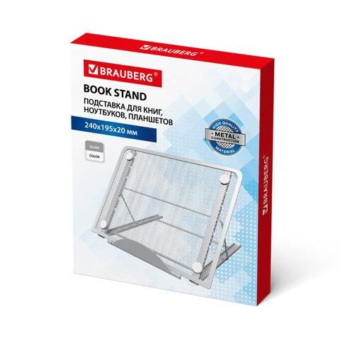 Подставка для книг BRAUBERG "Germanium" - идеальный выбор для удобного расположения учебных материалов, книг, презентаций, а также гаджетов при чтении, просмотре видео. Незаменимый помощник дома и в офисе, идеально впишется в любой интерьер.Подставка BRAUBERG выполнена из стали толщиной 0,7 мм, что делает ее максимально прочной и долговечной. Благодаря оптимальному уровню жесткости она способна удержать даже увесистые книги или гаджеты. Регулируемый угол наклона подставки позволяет комфортно разместить книгу, журнал или планшет на рабочем месте, обеспечивая удобство при чтении и работе с текстом, а также при просмотре видео. Все элементы подставки покрыты высококачественной краской, на которой не остаются отпечатки пальцев. Цвет - серебристый. Размер подставки 240х195х20 мм. Подставка упакована в картонную коробку.