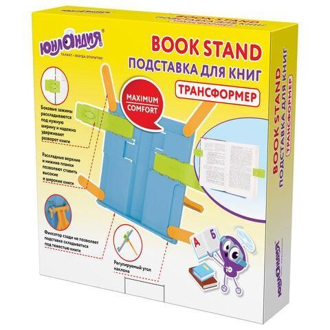 Подставка для книг ЮНЛАНДИЯ, с боковыми зажимами, регулируемый наклон, пластик, голубая, 237899