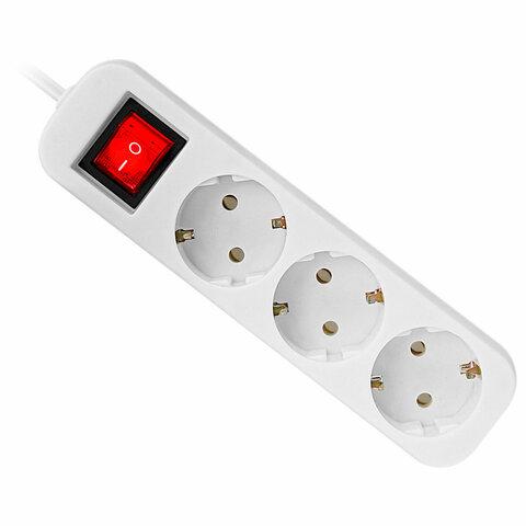 Удлинитель сетевой DEFENDER S318, 3 розетки c заземлением, выключатель, 10А, длина 1,8 м, белый, 99233