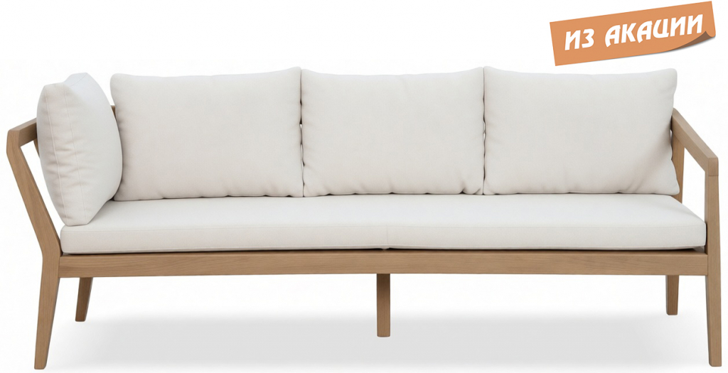 Модуль деревянный трехместный с подушками Nara песочный, бежевый