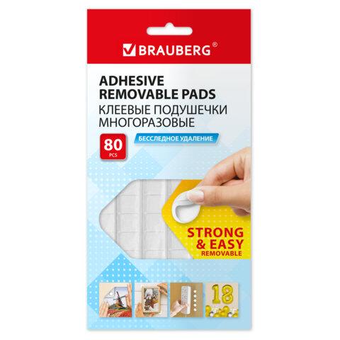 Клеевые подушечки многоразовые BRAUBERG, 80 шт., бесследное удаление, белые, 608780