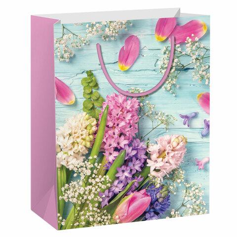 Пакет подарочный 26,5x12,7x33 см ЗОЛОТАЯ СКАЗКА "Spring Flowers", глиттер, розовый с голубым, 608247