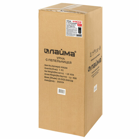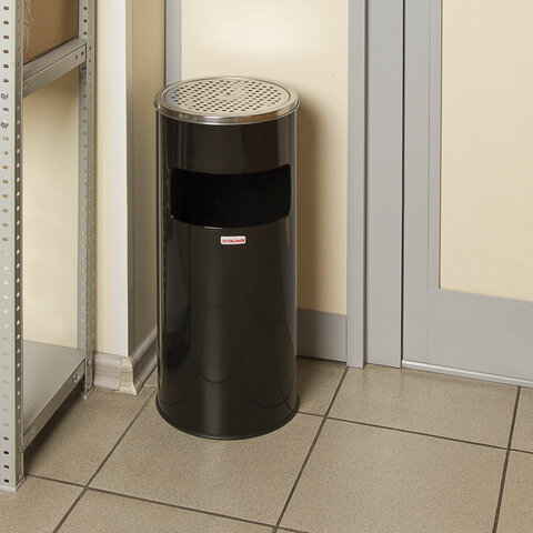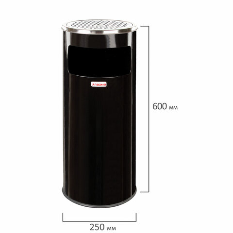 Урна с пепельницей 27 литров, 600х250 мм, нержавеющая сталь, черная, LAIMA PROFESSIONAL, 606300
