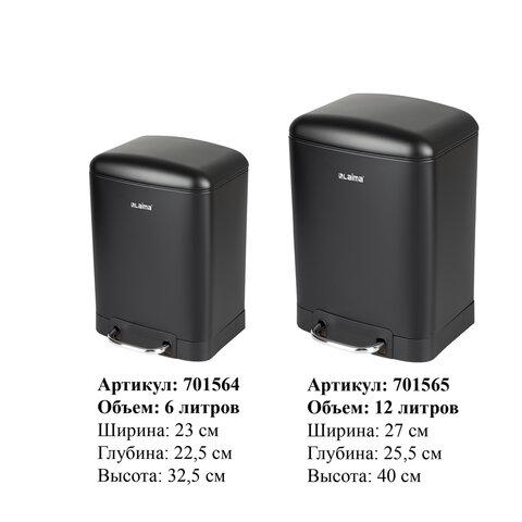 Ведро мусорное с педалью 6 л, крышка с доводчиком, черное матовое, металл, LAIMA ULTRA, 701564