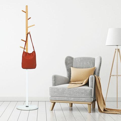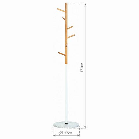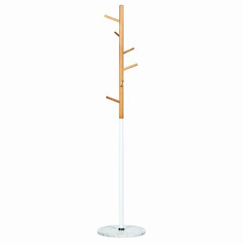 Вешалка-стойка BRABIX "CR-1906" на мраморном диске, металл белый/дерево бук, 6 крючков, 606440