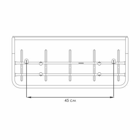 Вешалка настенная для верхней одежды и головных уборов. Простая и компактная конструкция. Подходит для организации пространства в коридоре, прихожей, гардеробной и даже в ванной комнате. Является отличным выбором для дома и офиса.Прочный каркас из металлических труб. Пять двойных крючков с защитными пластиковыми колпачками. Допустимая нагрузка на крючок – до 5 кг. Удобная полка для головных уборов. Дополнительный пластиковый крючок для мелочей. Изделие поставляется в разобранном виде в картонной коробке с ручкой. Простая сборка, без применения инструментов. Крепеж к стене не входит в комплект фурнитуры!