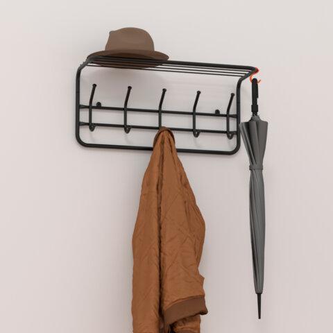 Вешалка настенная с полкой "ВСП6", 265х600х220 мм, 5 крючков, металл, черная, ВСП 6 Ч