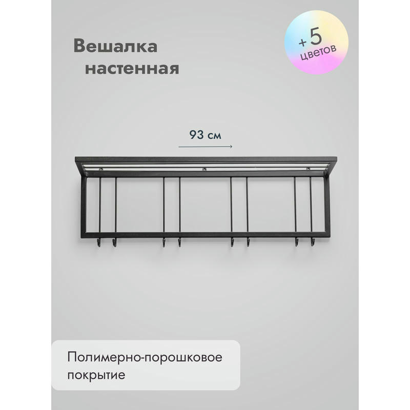Вешалка настенная металлическая с полкой и крючками -93 (черный)