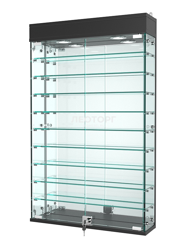 - 9 стеклянных полок — увеличенная вместимость для размещения большого количества экспонатов;