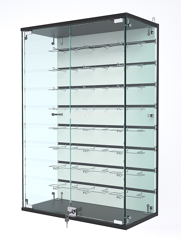 Прозрачный стеклянный корпус с боковыми панелями обеспечивает панорамный обзор содержимого со всех сторон, а распашные дверки с замком надёжно защищают товары от повреждений и несанкционированного доступа. Отсутствие полок позволяет максимально задействовать внутренний объём. Витрину легко монтировать на любую вертикальную поверхность — она впишется в торговые зоны любой планировки. Каркас из ДСП гарантирует прочность и долговечность конструкции.
