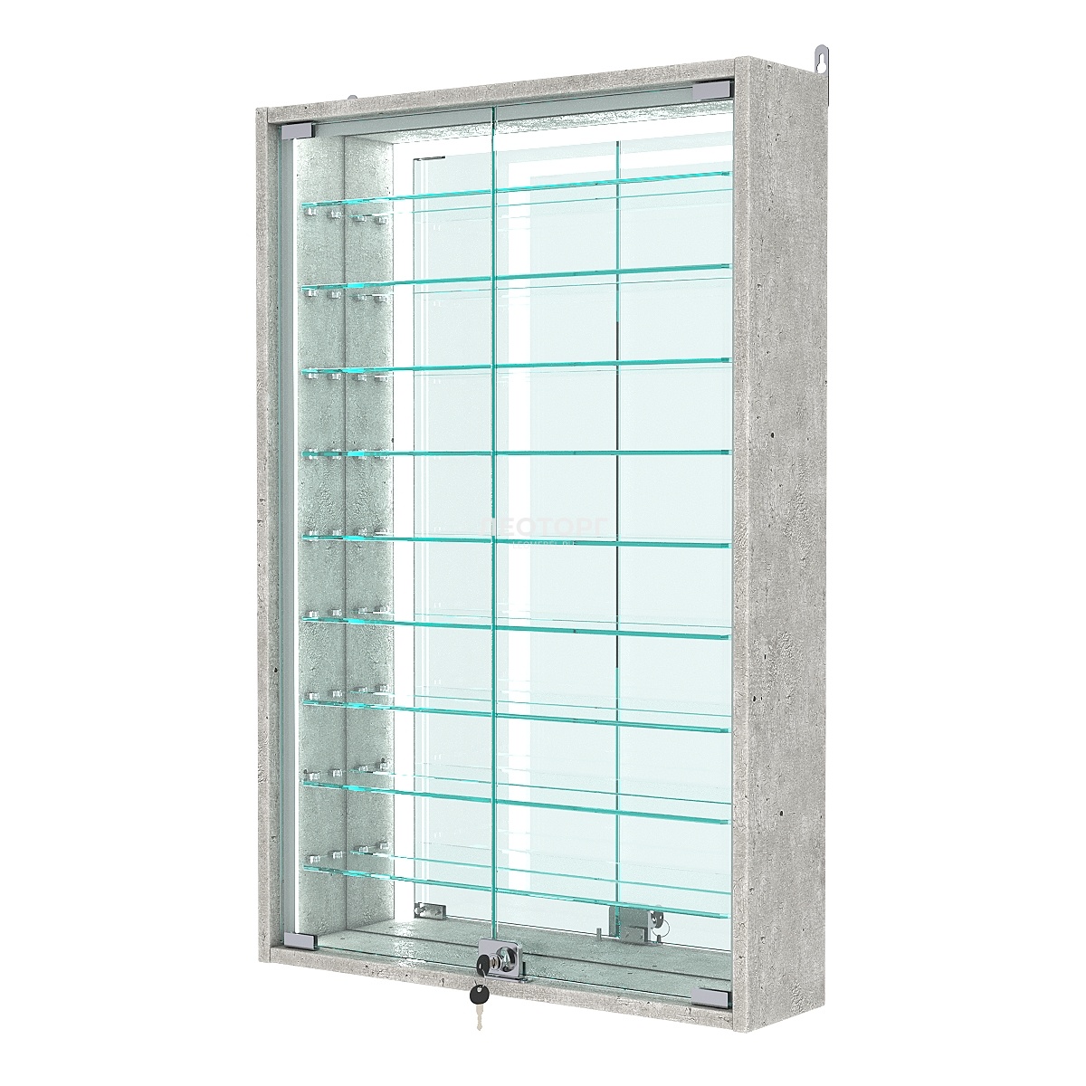 Витрина настенная №2-6А-П с зеркалом, Метрополитан Грей
