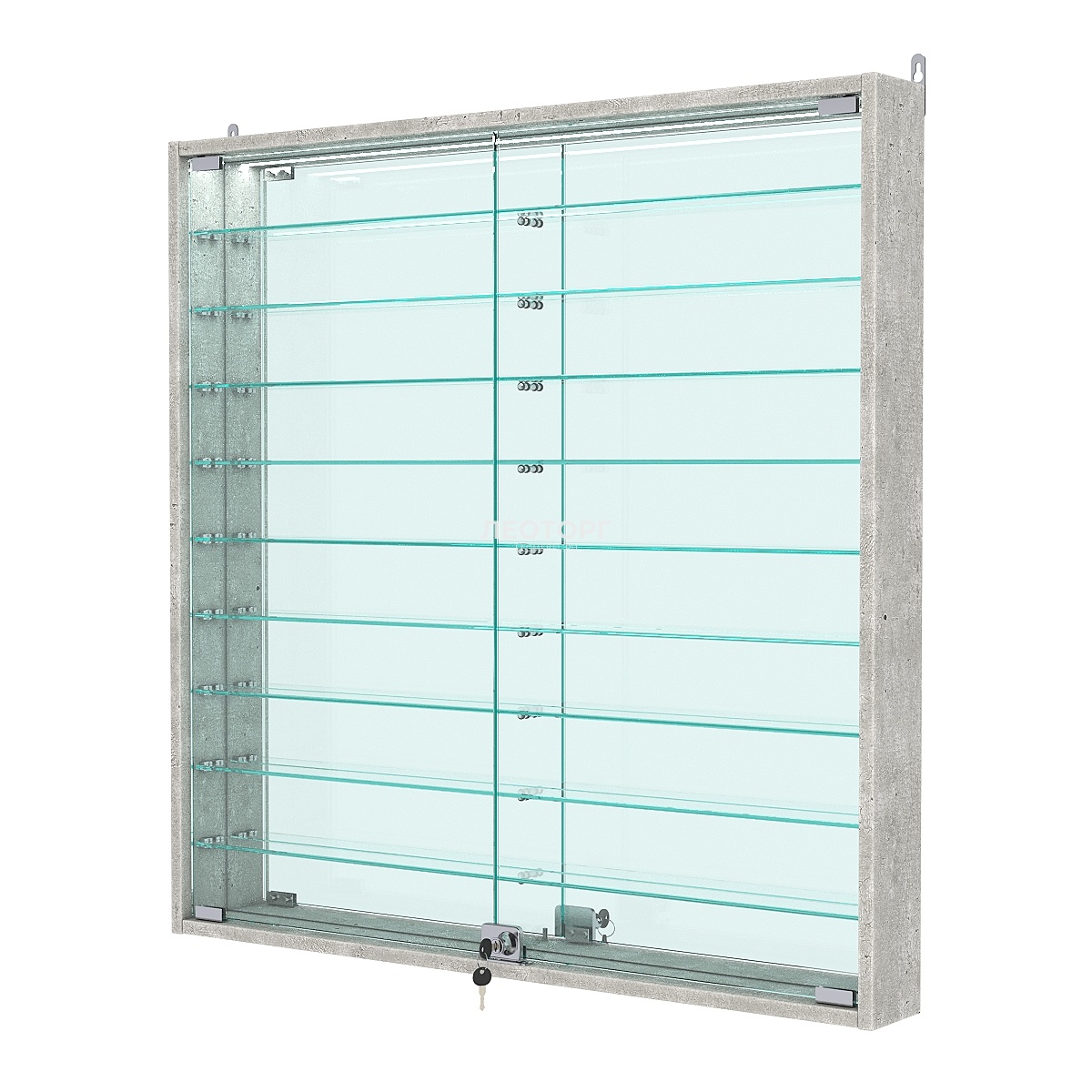Витрина настенная №4-8АУ с зеркалом и с подсветкой, Метрополитан Грей
