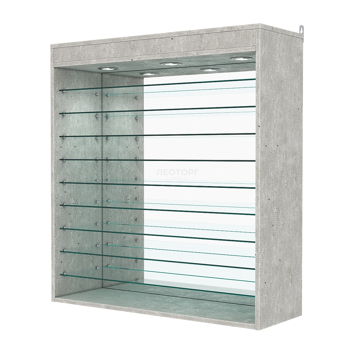 Витрина настенная №4-8ГГ с зеркалом и с подсветкой, Метрополитан Грей