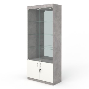 Витрина №1-3 (с дверками, задняя стенка - зеркало), Бетон Чикаго светло-серый + Белый