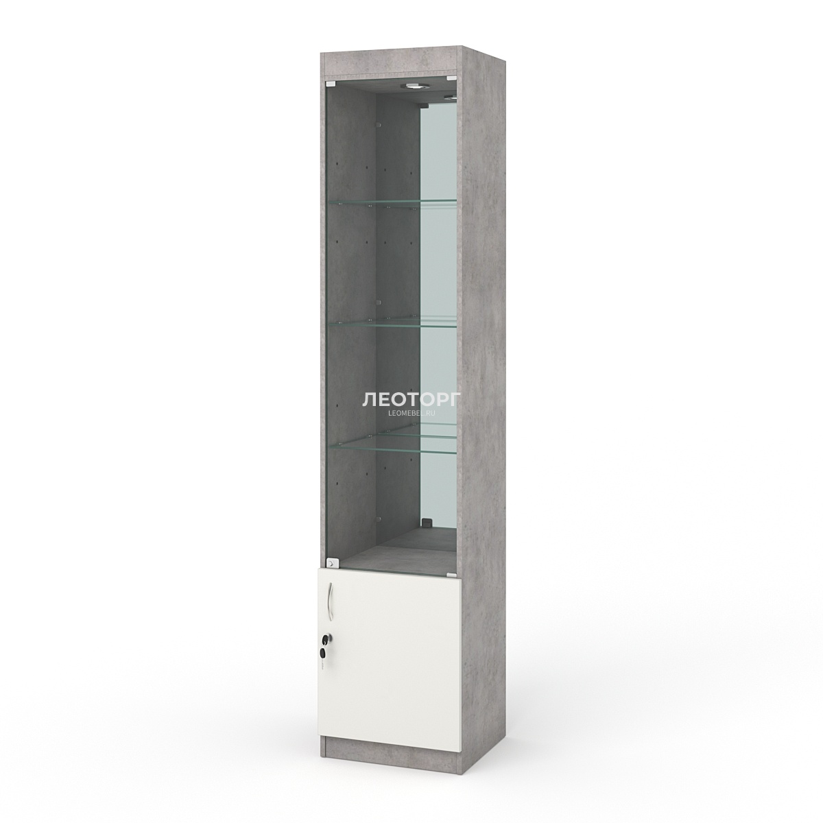 Витрина №2-3 (с дверкой, задняя стенка - зеркало), Бетон Чикаго светло-серый + Белый