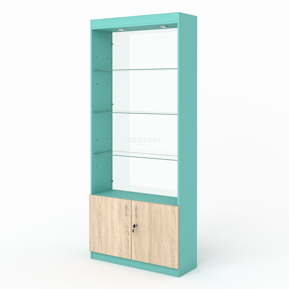 Витрина №300-2 (без дверок, задняя стенка - стекло), Тиффани Аква и Дуб Сонома