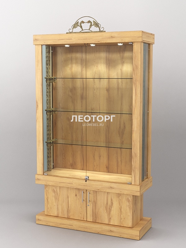 Материал - каркас из ЛДСП; полки стеклянные; двери витрины стеклянные, толщиной в 5мм.