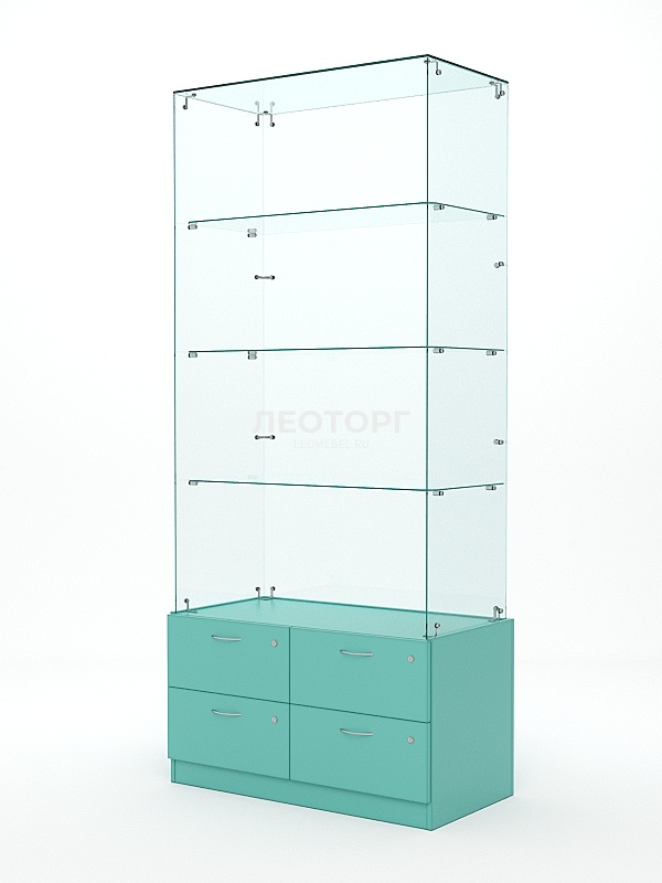 Витрина стеклянная "ХРУСТАЛЬ" №105 (без дверок, задняя стенка - стекло), Тиффани Аква