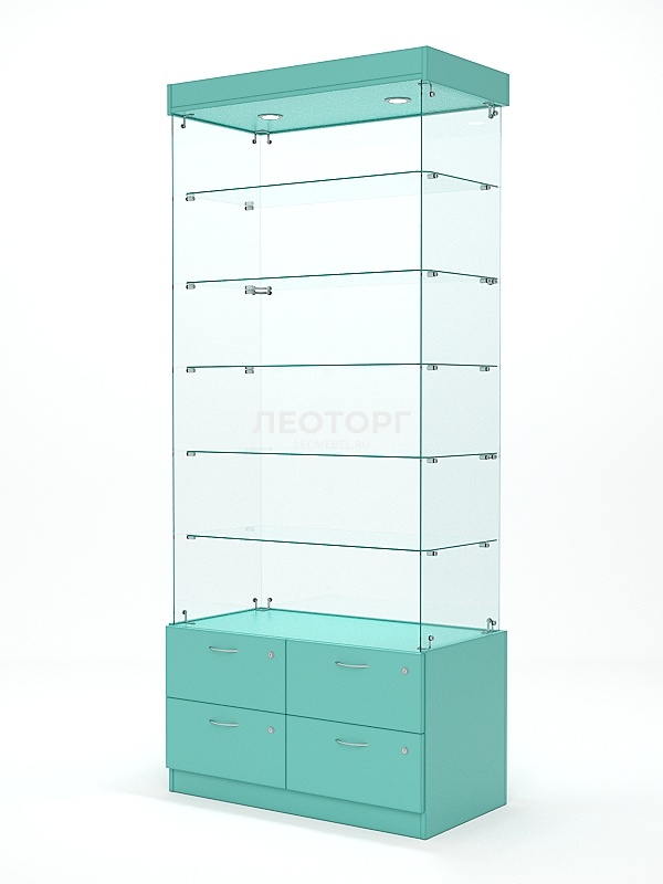 Витрина стеклянная "ХРУСТАЛЬ" №601 (без дверок, задняя стенка - стекло), Тиффани Аква
