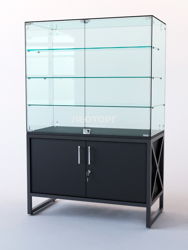 Витрина стеклянная "ЛОФТ СТИЛЬ" островная №301 (с дверками, фасад - стекло), Черный