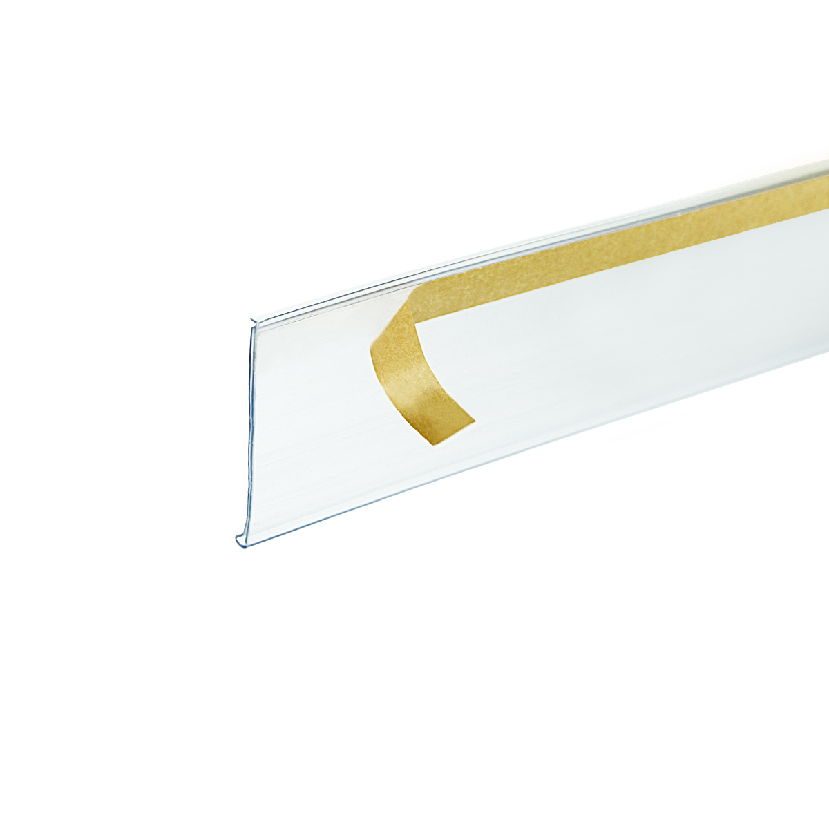 Прозрачный ценникодержатель DBR52 применяется для установки ценников высотой 52 мм на полках стеллажей.