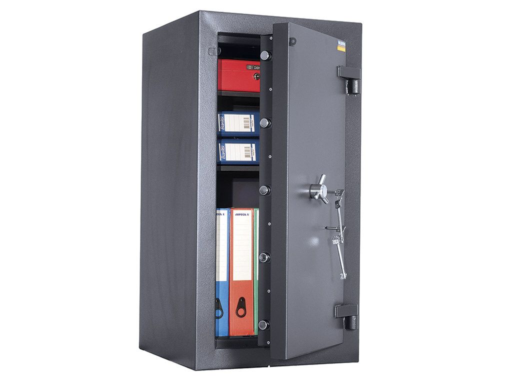 Предназначен для защиты документов и ценностей при пожаре и взломе. Рекомендованная сумма хранения денег до 6.5 млн. руб. для физических лиц и до 2 млн. руб. для юридических лиц. Устойчивость к взлому по ГОСТ Р 50862-2017: класс 3 (ГОСТ Р).