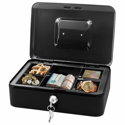 Ящик для денег, ценностей, документов, печатей, 90х180х250 мм, ключевой замок, черный, BRAUBERG, 291349