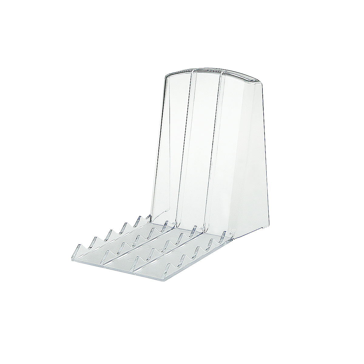 Пластиковая опора BACK-XL предназначена для выкладки товаров в плоской упаковке. Используется для выкладки одиночных экземпляров товара, например: книг, и для организации выкладки на полке. Товар, установленный на опору, удерживается ребристыми выступами в основании опоры и образует вместе с задней стенкой удерживающий заслон для всех товаров в ряду на полке.
