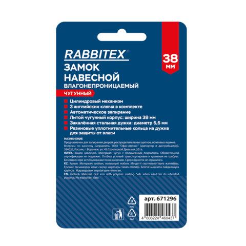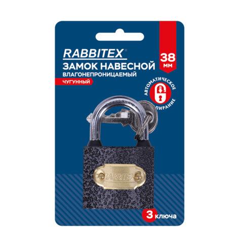 Замок навесной чугунный "Влагонепроницаемый", ширина 38 мм, полимерное покрытие, английский, 3 ключа, RABBITEX, 671296