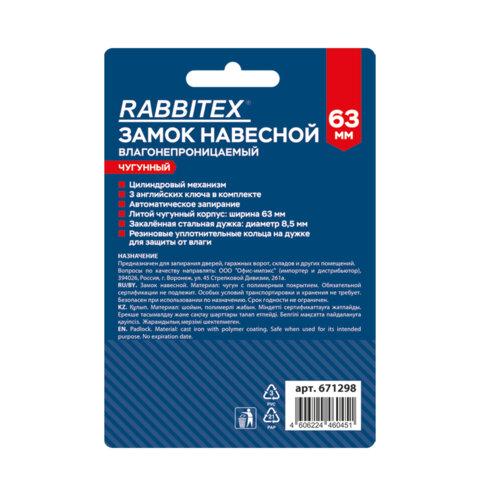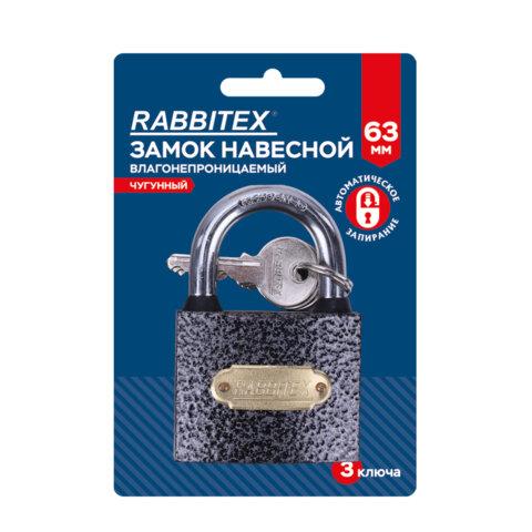 Замок навесной чугунный "Влагонепроницаемый", ширина 63 мм, полимерное покрытие, английский, 3 ключа, RABBITEX, 671298