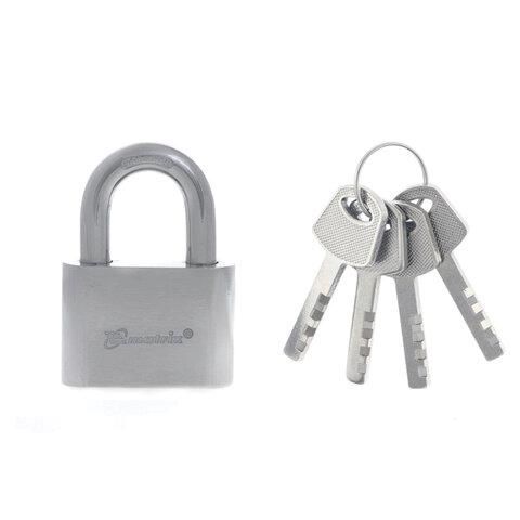 Замок навесной, ширина 60 мм, хромированная сталь, дужка d-11 мм, финский, 4 ключа, MATRIX, 91802