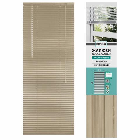 Жалюзи горизонтальные BRABIX 50х160 см, АЛЮМИНИЙ, цвет бежевый, 608635