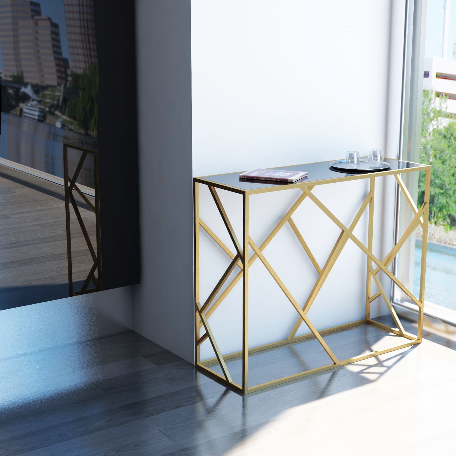 Наименование: Стол-консоль Грация, черный, стекло триплекс, цвет каркаса золото
