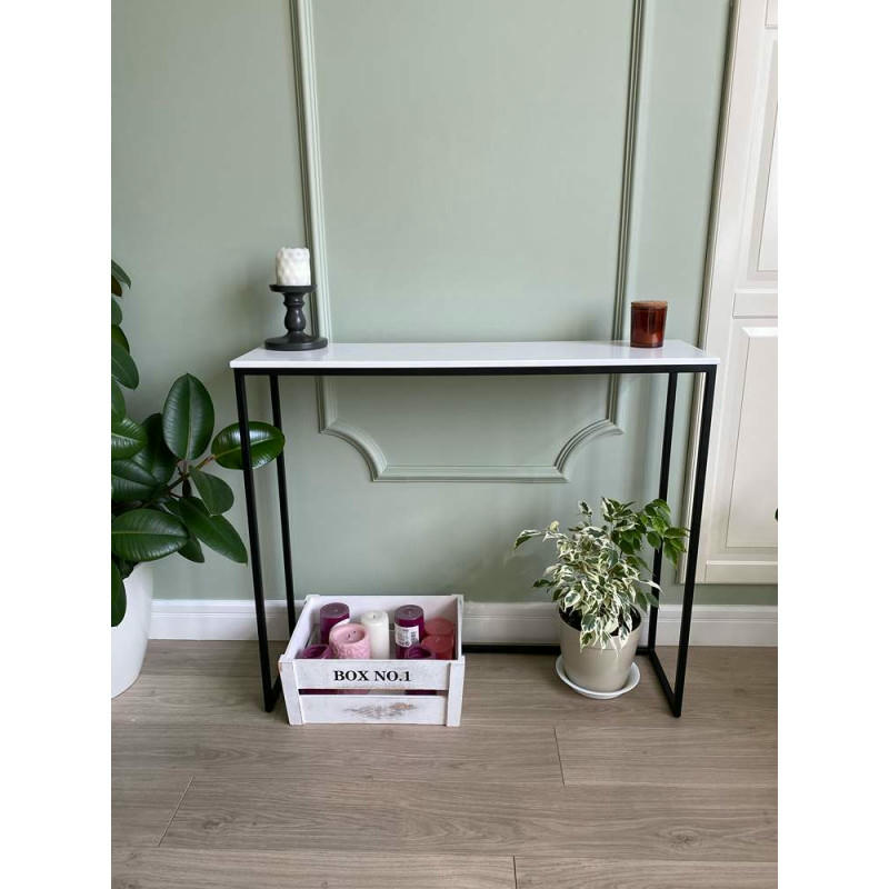 Журнальный столик искусственный камень гранит белый/каркас черный