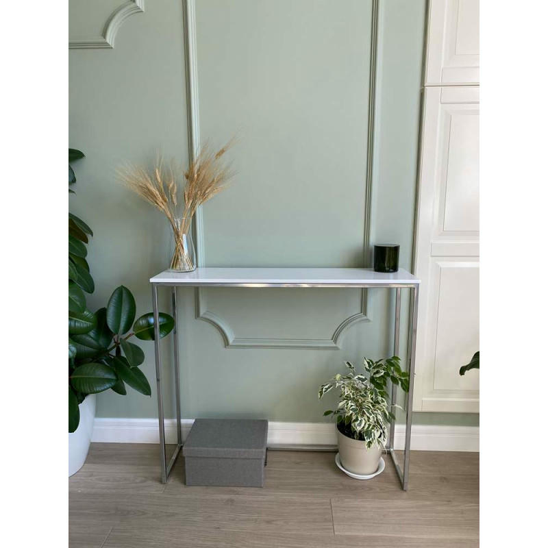 Журнальный столик искусственный камень гранит белый/каркас хром