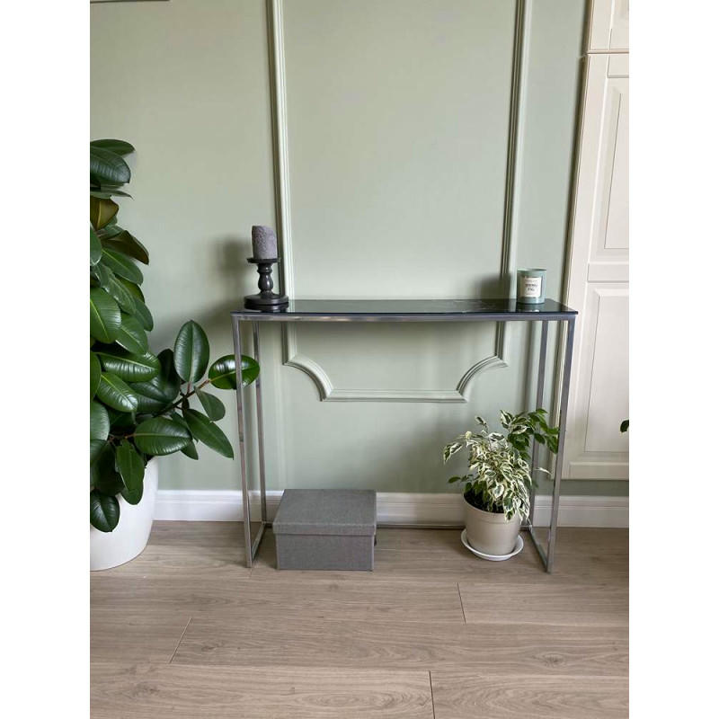 Журнальный столик стекло под мрамор черный/каркас хром