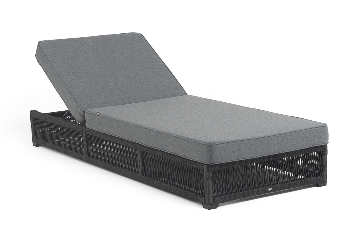 "Ривьера" шезлонг плетеный из роупа, каркас алюминий темно-серый (RAL7024) муар, роуп темно-серый круглый, ткань темно-серая 027цвет Темно-серый