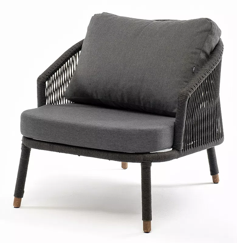 "Верона" кресло плетеное из роупа, каркас алюминий темно-серый (RAL7024) шагрень, роуп темно-серый круглый, ткань Savana Grafitцвет Темно-серый