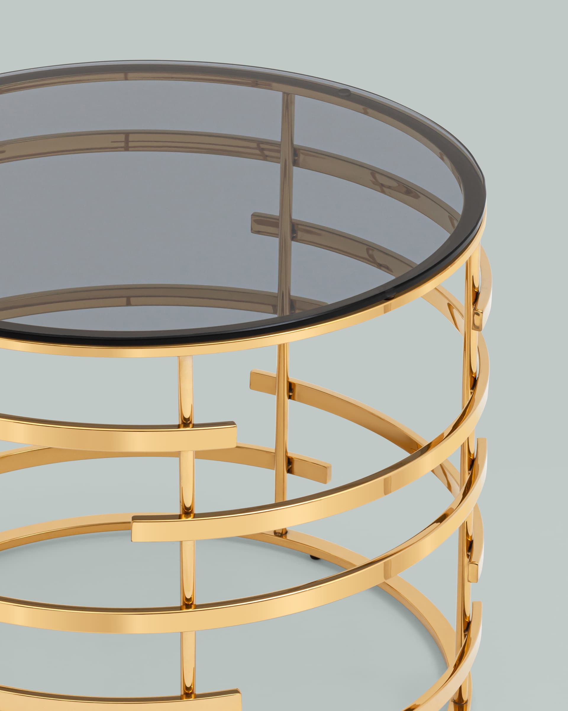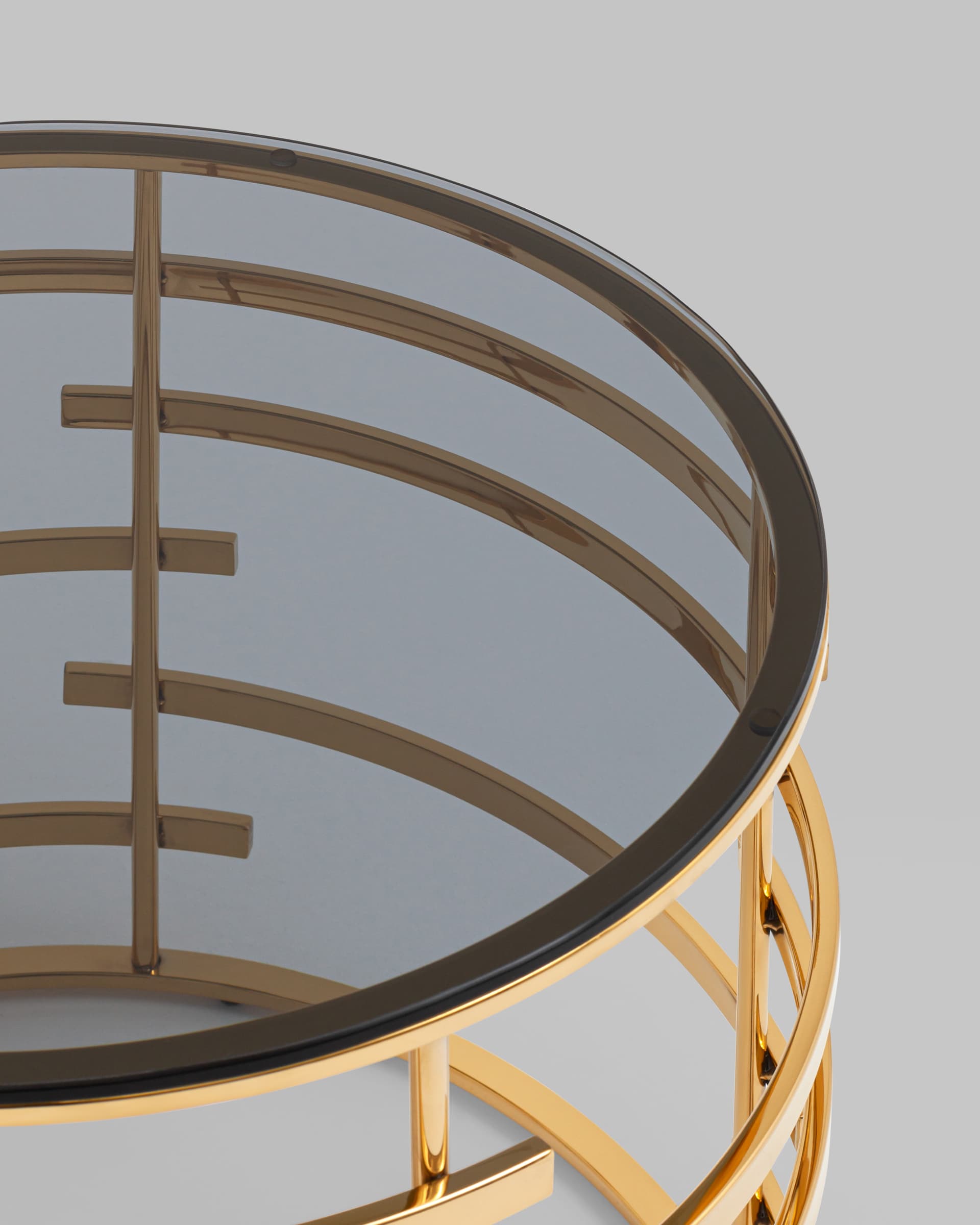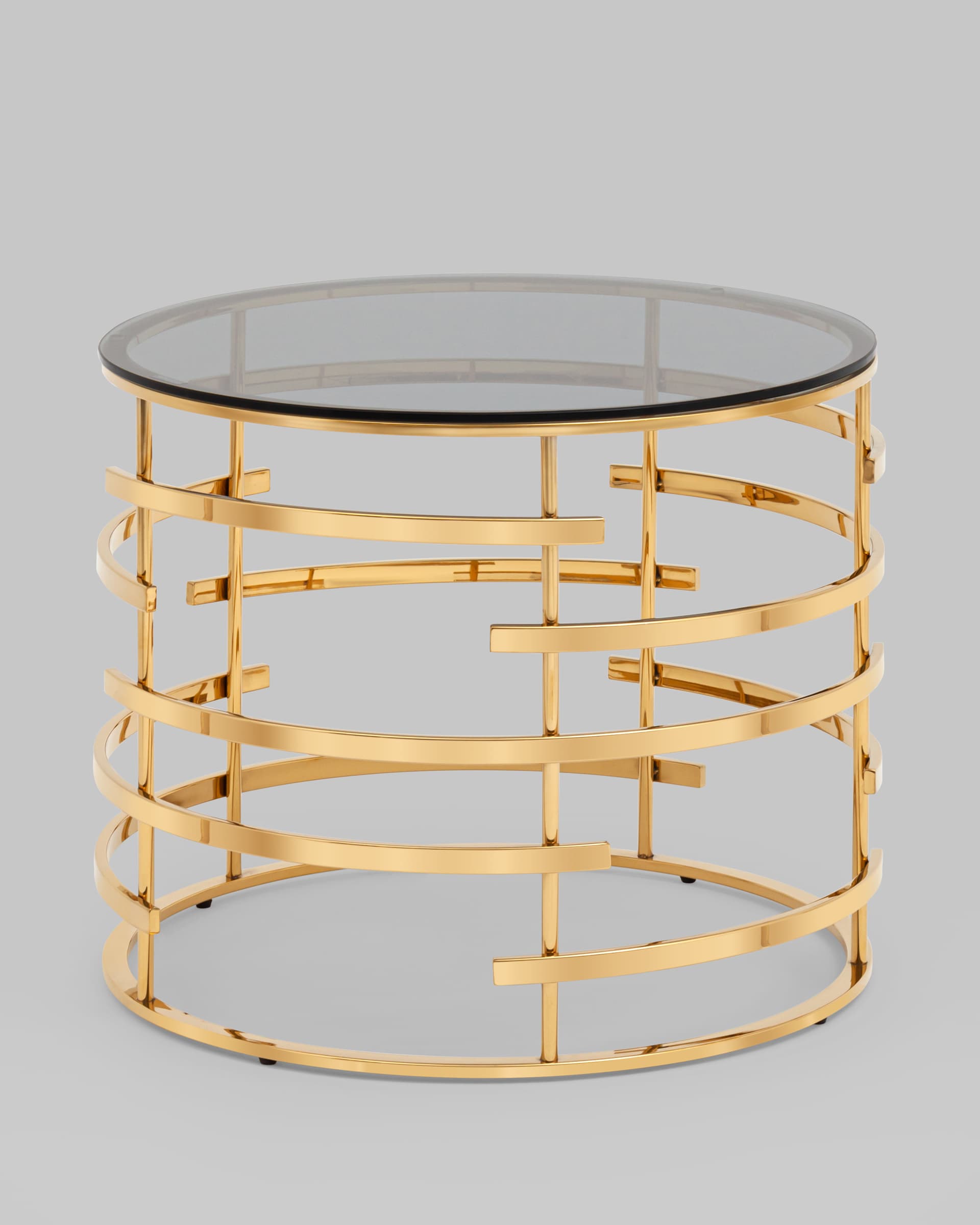 Журнальный столик Инфлюэнс 60*60 стекло smoke сталь золото
