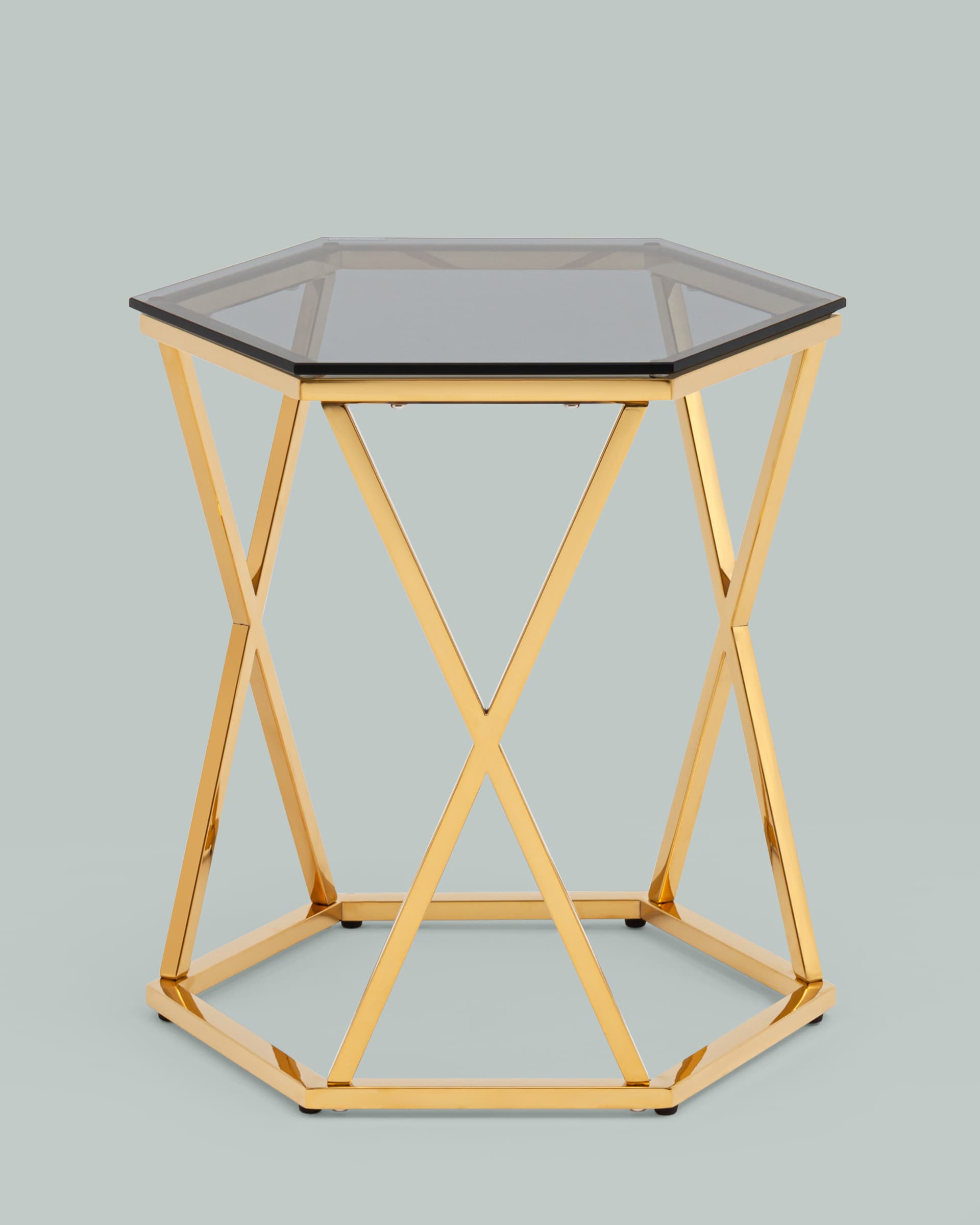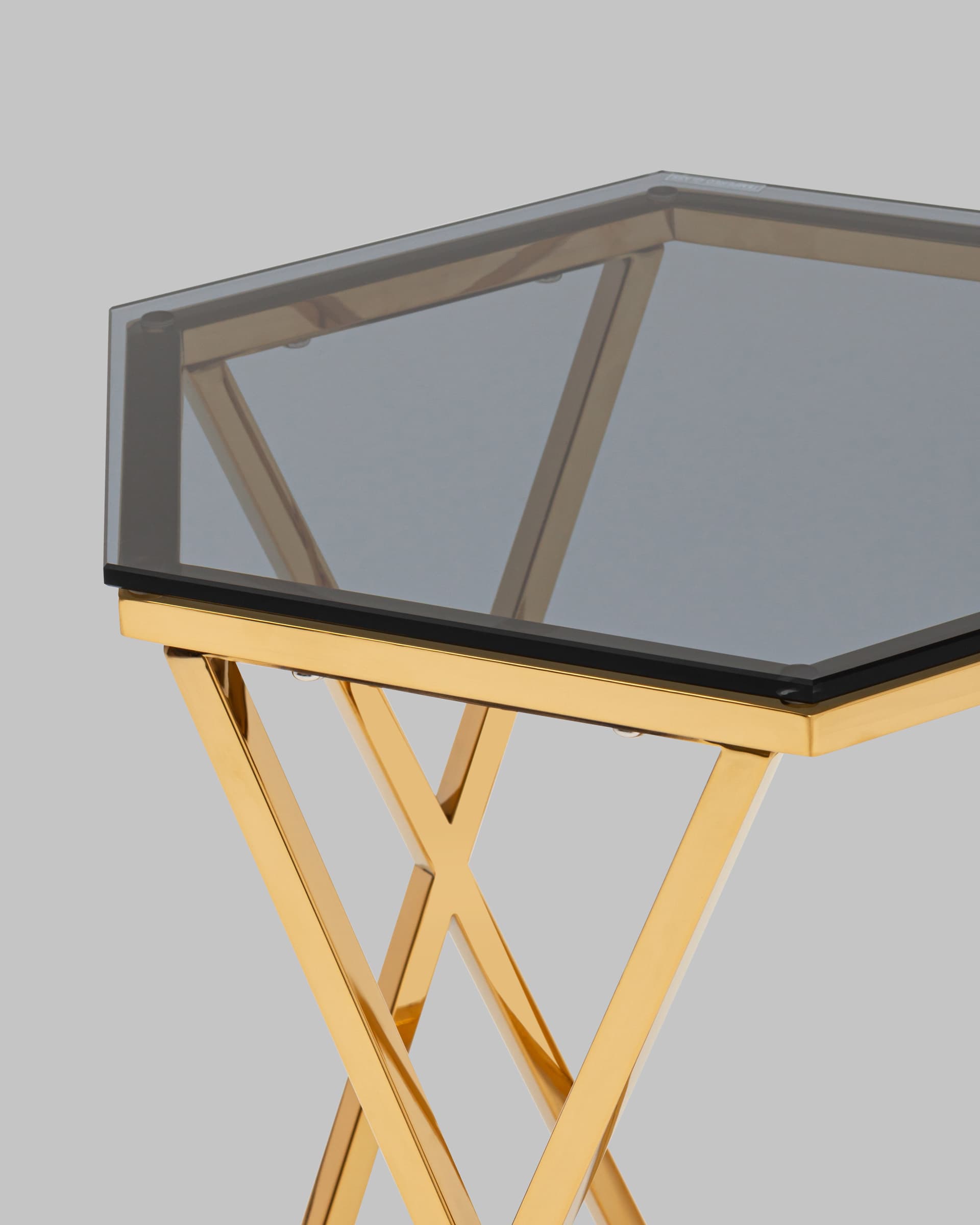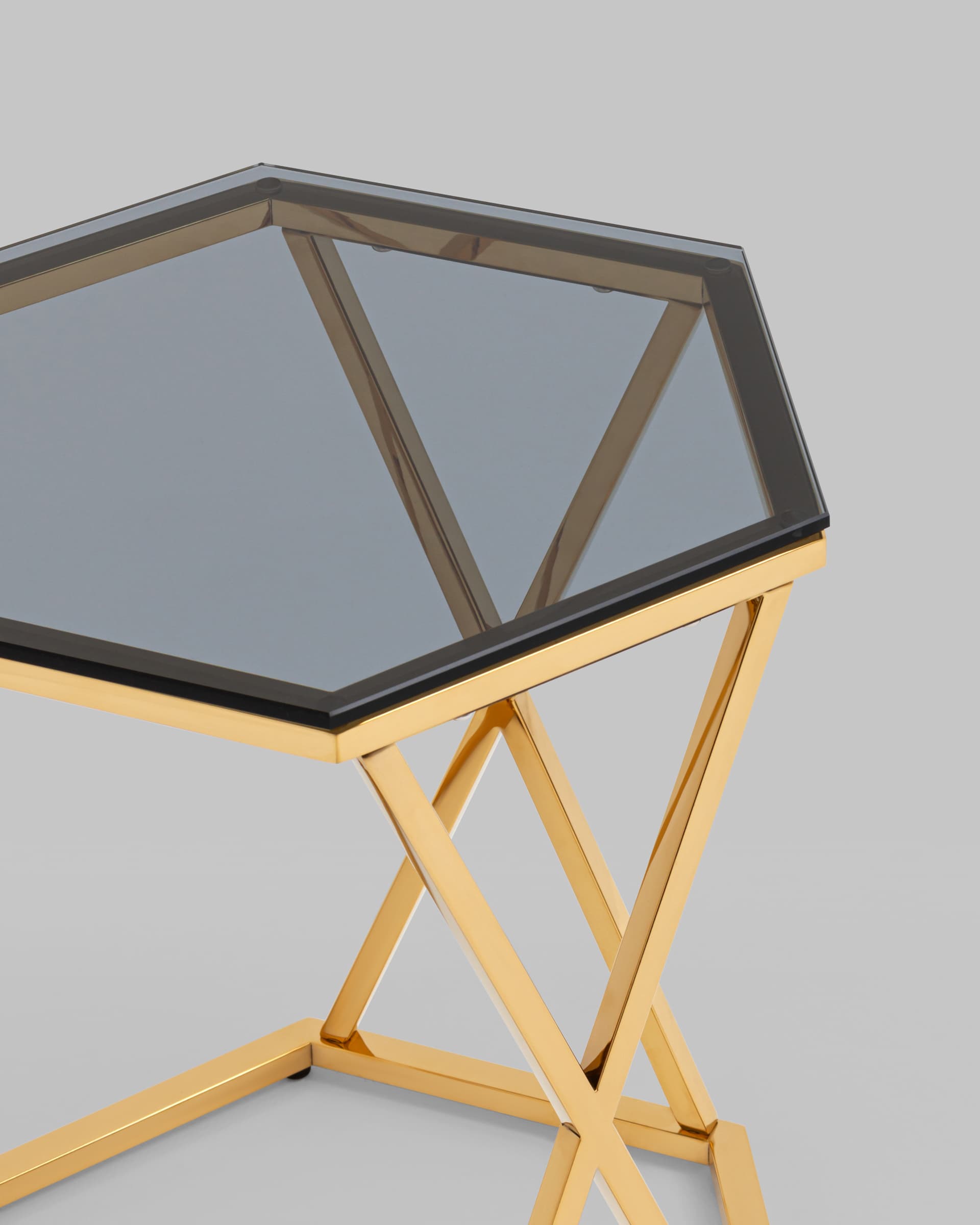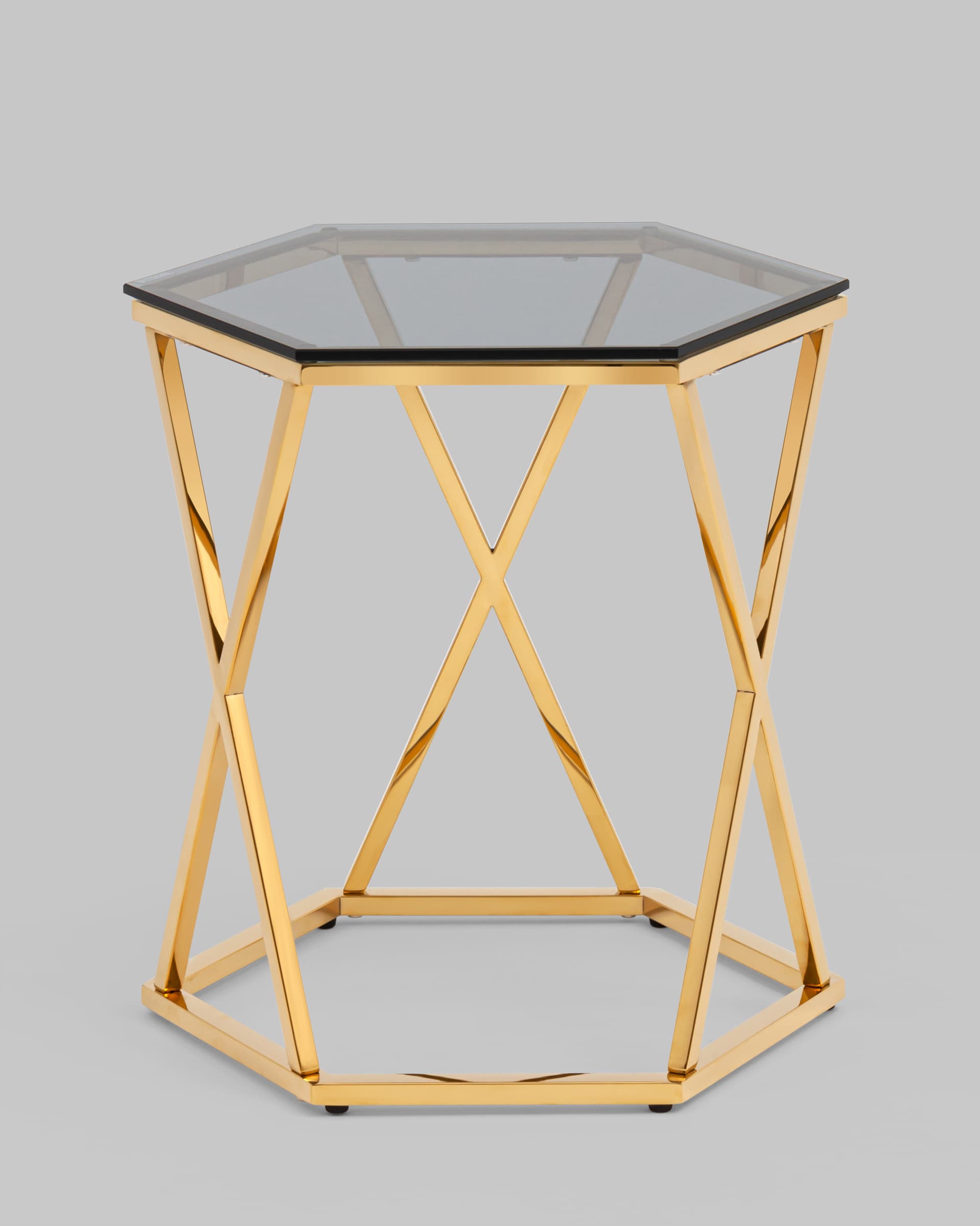 Журнальный столик Круз 48*42 стекло smoke сталь золото